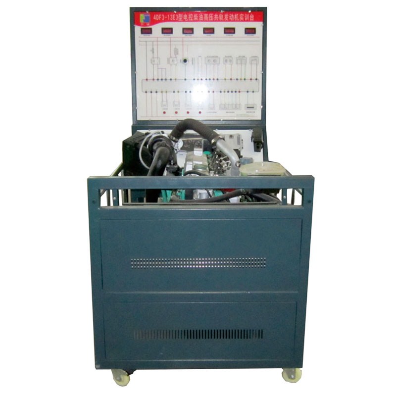 1. This trainer is made by 4DF3-13E3 Electronically controlled diesel high pressure common rail engine, including: engine assembly, engine electronic control system, engine theft-proof system, power system, ignition device, start-up system, charging system, engine fuel supply system, draindown system, Auto instrument panel, operating console, measurement board, OBD diagnose interface, Fault setting system and mobile holder