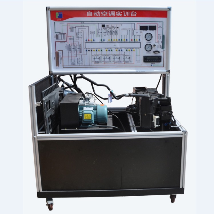 1. This trainer is made by Passat automatic air conditioning system, including: automatic air conditioning control unit, evaporator assembly, servo motor, High and low pressure air conditioning pipe, drive motor , compressor, measurement board, OBD diagnose interface, Fault setting system and mobile holder.