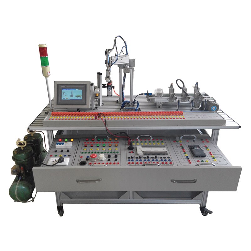 該裝置的整個系統(tǒng)為模塊化開放式平臺,配置有可編程控制器,變頻器裝置,氣動裝置,傳感器,機(jī)械手,自動裝料機(jī)構(gòu),上料檢測,送料傳動和分揀進(jìn)倉裝置等實(shí)驗(yàn)機(jī)構(gòu)。實(shí)訓(xùn)模塊可根據(jù)不同的實(shí)訓(xùn)要求進(jìn)行組合;同時學(xué)校還可以根據(jù)教學(xué)需要,配置不同品牌的模塊和變頻器模塊,也可以增加其他實(shí)訓(xùn)模塊。